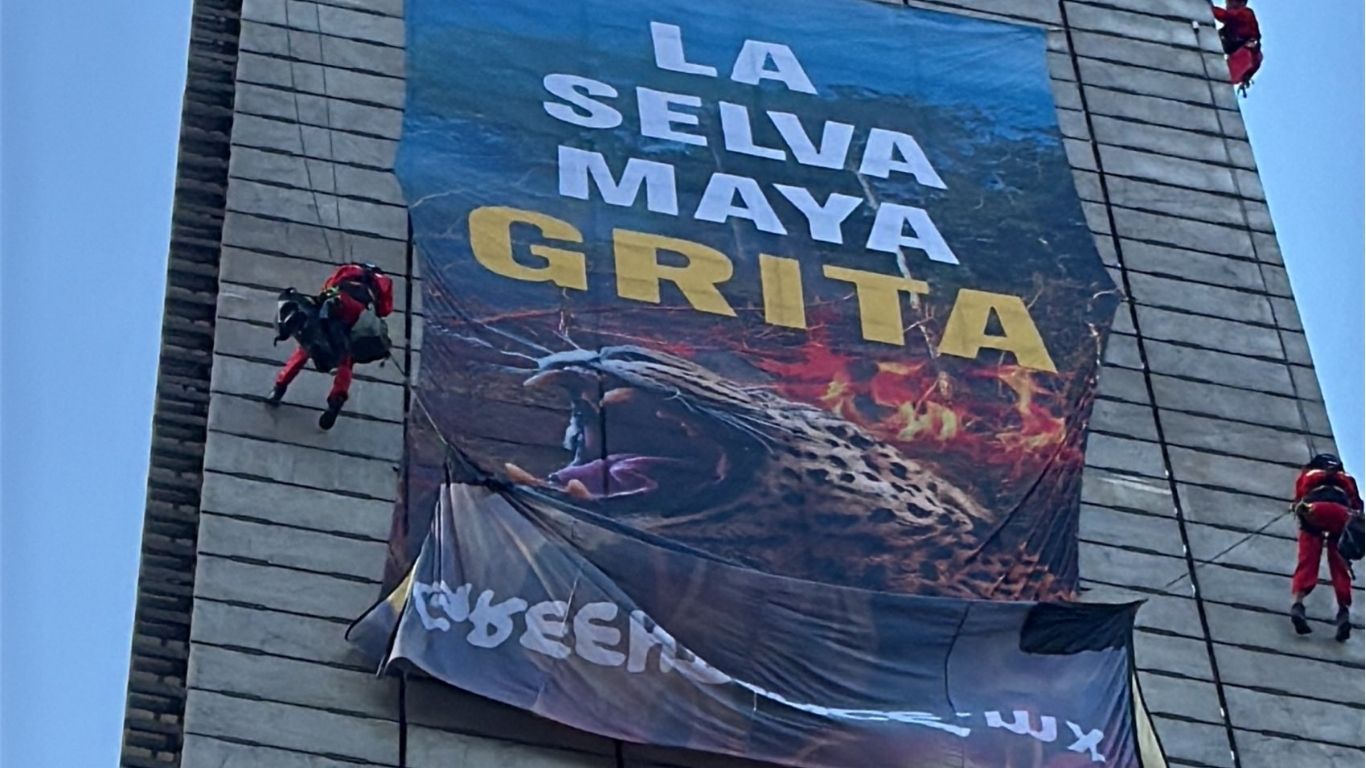 Greenpeace afirmó que la Selva Maya no solo es un corredor biocultural clave para México, Belice y Guatemala, sino que sus daños tienen repercusiones climáticas, sociales y ecológicas que trascienden fronteras. El despliegue de la manta y la protesta visual buscan recordar que la degradación ambiental no se queda en la selva, sino que impacta al país entero.
