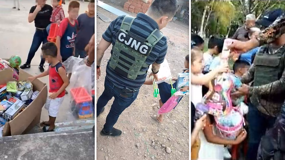 Cuatro hombres fueron detenidos en el municipio de Guadalupe, Nuevo León, después de ser identificados mientras repartían juguetes con leyendas del cártel del Noreste a menores de edad. La Secretaría de Seguridad Pública municipal informó que los detenidos fueron identificados como Bryan, de 25 años; Erick, de 27 años; Francisco Israel, de 31 años; y Lander Alejandro, de 18 años, este último con una ficha de desaparición emitida el 29 de noviembre de 2025 en Baja California.