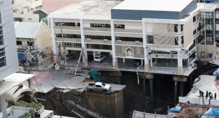 Las autoridades de Tailandia iniciaron trabajos de reparación tras la aparición de un socavón de 50 metros de profundidad frente al Hospital Vajira, en el norte de Bangkok. El hundimiento, ocurrido la víspera, provocó daños materiales pero no dejó víctimas.